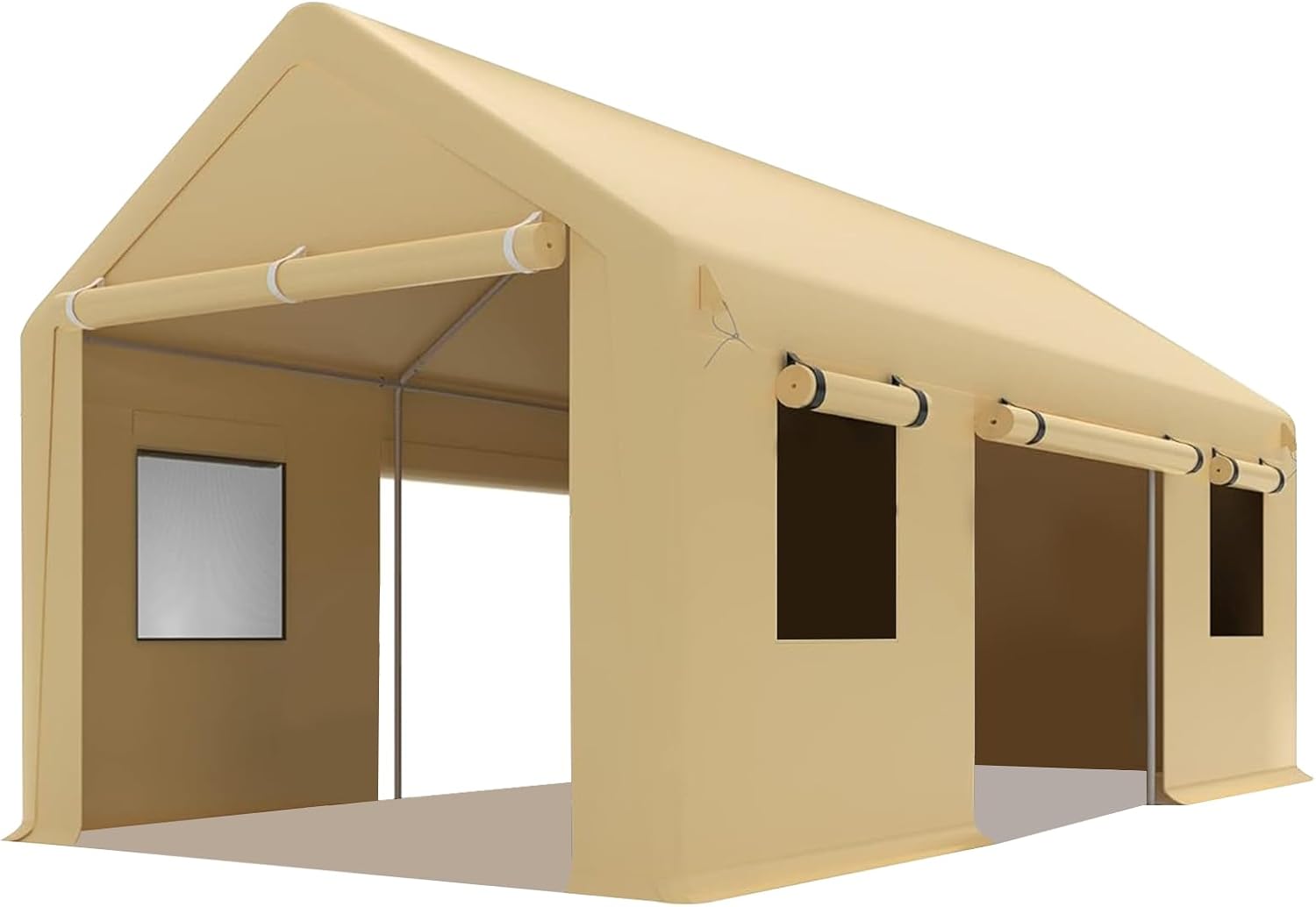 - Ventilated Design with Roll-Up Doors & Windows: Roll-up windows and doors improve airflow for heat control and easy access to parked vehicles. Flexible use: open for ventilation in summer or closed for full protection in rain/snow.