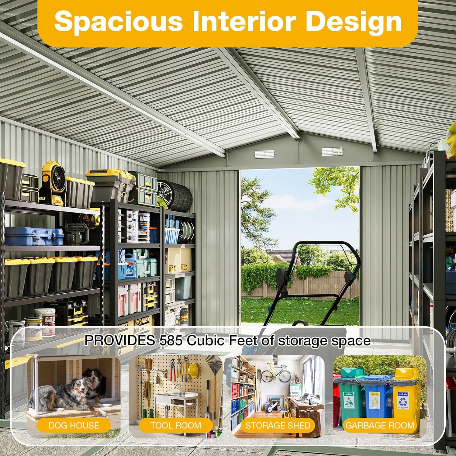 - Durable Galvanized Steel Construction: Expertly crafted with thick galvanized steel panels and reinforced structural engineering, this metal shed delivers exceptional longevity and rust resistance. The anti-rust powder-coated surface withstands harsh weather, ensuring years of reliable outdoor storage without corrosion, making it a premier storage shed for homeowners.