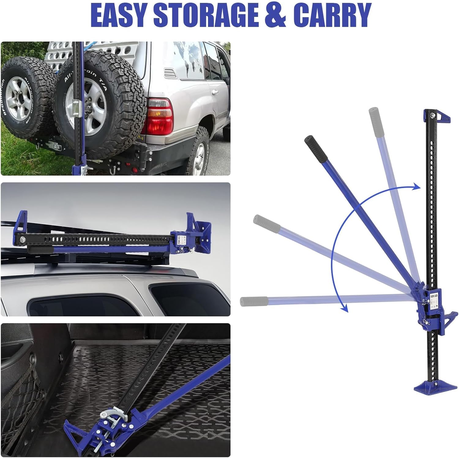 - ULTRA-STABLE & SAFE OFF ROAD JACK :Designed with a wide base for superior stability, this hi lift jack ensures secure operation on uneven terrain. The ratcheting mechanism allows precise height adjustments, making it ideal for offroad jack recovery and heavy-duty farm tasks.