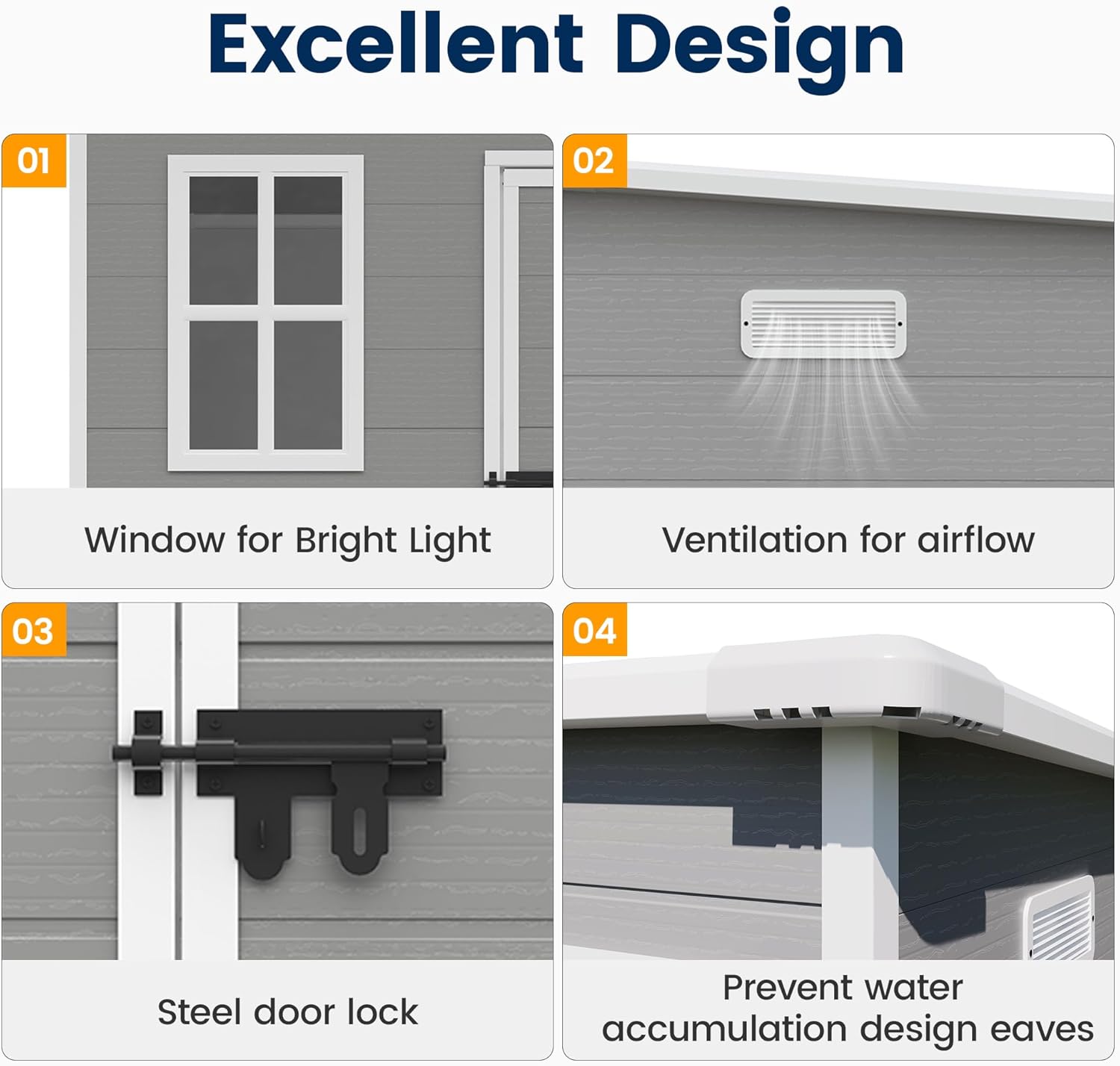 - STURDY STRUCTURE: Our outdoor storage room is equipped with a sturdy structure that can protect the stored items from the threat of rain and mold, while the lockable doors also provide security for your property