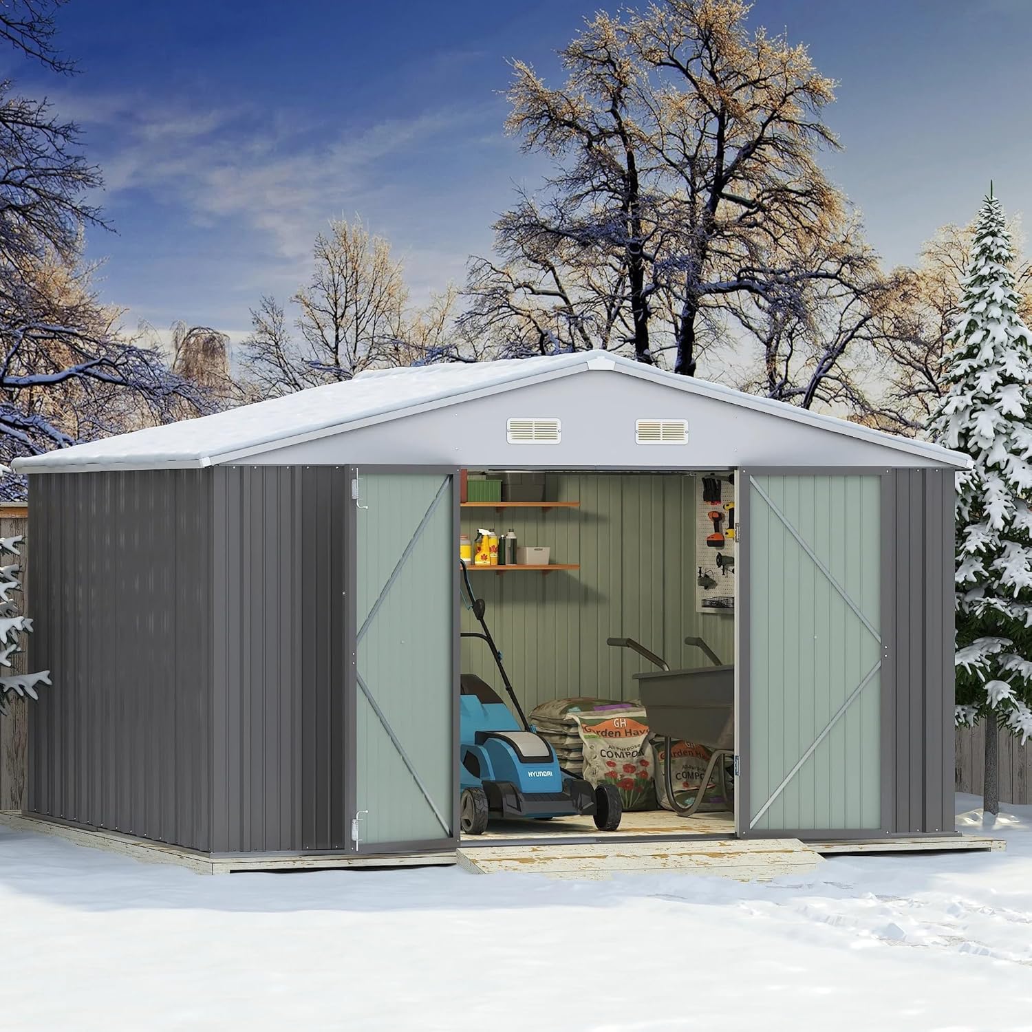 - Robust Steel Construction for Long-Lasting Durability: Built with heavy-duty galvanized steel, this shed resists rust, harsh weather, and wear, offering reliable protection for your tools and equipment year after year.