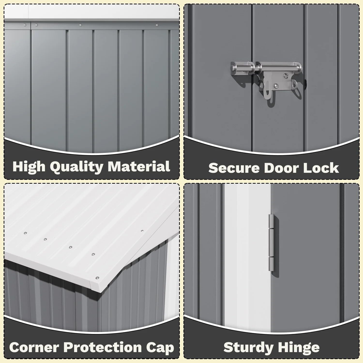 - Robust Steel Construction for Long-Lasting Durability: Built with heavy-duty galvanized steel, this shed resists rust, harsh weather, and wear, offering reliable protection for your tools and equipment year after year.