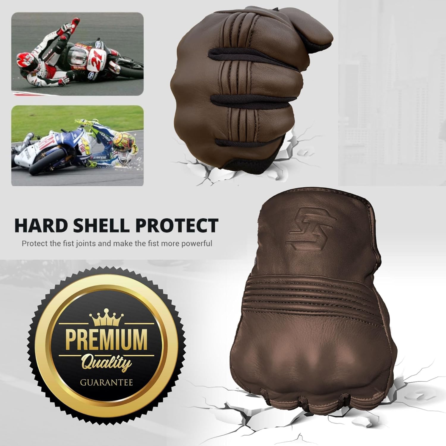 Leather Motorcycle Gloves for Men and Women | Touchscreen | Full Finger | Goatskin Leather Hard Knuckle Motorcycle Riding Gloves (Classic Brown, XX-Large)
