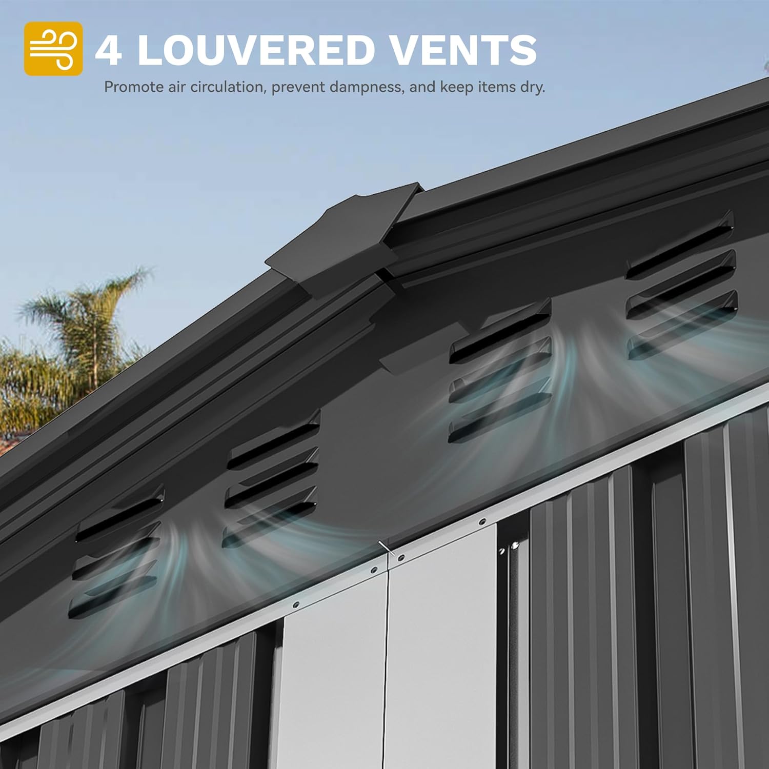 DWVO 8x6FT Outdoor Storage Shelter, Roomy Steel Tool Shed with Secure Entrances & Air Circulation for Patio, Lawn, and Backyard, Ideal for Storing Garden Gear, Lawn Tools, and Bikes, Dark Gray